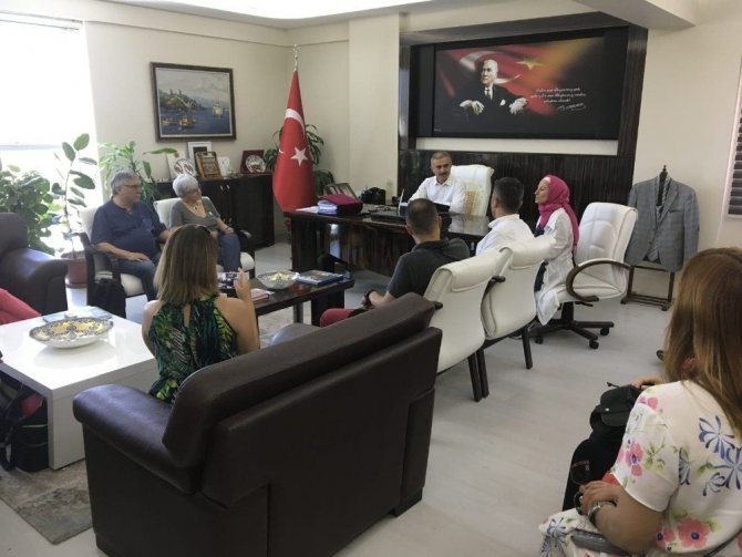Manisa Sosyal Bilimler Lisesi proje koordinatörleri İngilizce öğretmenleri Aslıhan Şirin ve İlknur Aktaş ile birlikte yabancı öğretmenler Yunusemre Kaymakamı Ahmet Erdoğdu’yu da ziyaret etti.