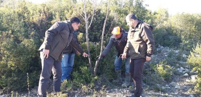 Aydın'ın Kuşadası ilçesinde yabani hayvanların yem sıkıntısı yaşaması için verimi olmayan yabani meyve ağaçlarında aşılama çalışması yapıldı.