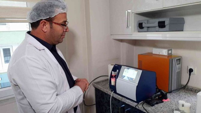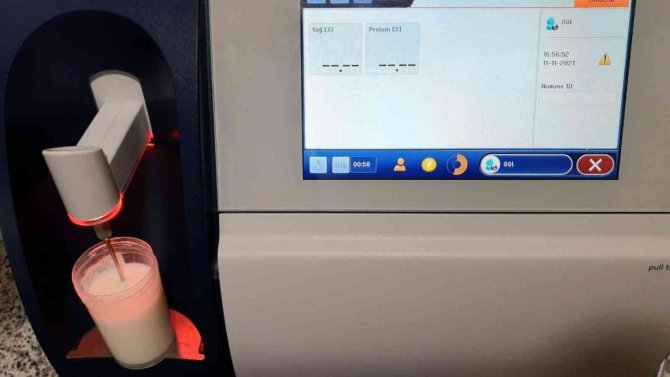 Laboratuvarda çiğ sütlerin protein ve yağ değerleri ölçülüyor