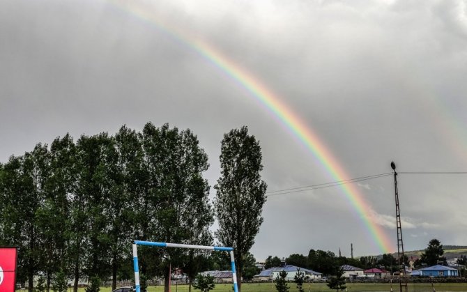 Göle ilçesinde bir haftadır aralıklarla devam eden sağanak yağış bugün de devam etti. Meteoroloji Genel Müdürlüğünün uyarılarının ardından akşam saatlerinde başlayan sağanak yağış ilçede sabaha kadar etkisini sürdürdü. Yağışın ardından sabah saatlerinde gökyüzünde gökkuşağı belirdi. Gökyüzünde oluşan ve renkli görüntüler oluşan gökkuşağı hayran bıraktı. İlçe üzerinde oluşan gökkuşağı görsel bir tablo meydana getirirken, vatandaşlarda cep telefonları ile o anları kayıt altına aldı.