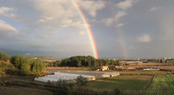 Serik ilçesine bağlı Deniztepesi Mahallesi'nde yağmur sonrası güneşin kendini göstermesiyle birlikte gökyüzünde gökkuşağı meydana geldi. Gökkuşağını gören vatandaşlar, o anları cep telefonu ile kaydetti. Gördüğü gökkuşağı manzarasını kayıt altına alan bir vatandaş, "Gökkuşağı kendini dağlardan dağlara vermiş. Görüyorsunuz gökkuşağını, çok güzel" dedi.