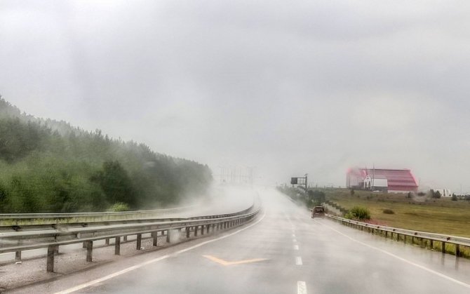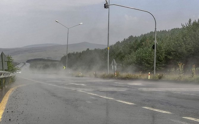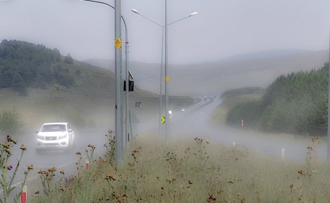 Ardahan'da sabah saatlerinde etkili olan sağanak yağış sonrası oluşan sis ulaşımın aksamasına neden oldu.