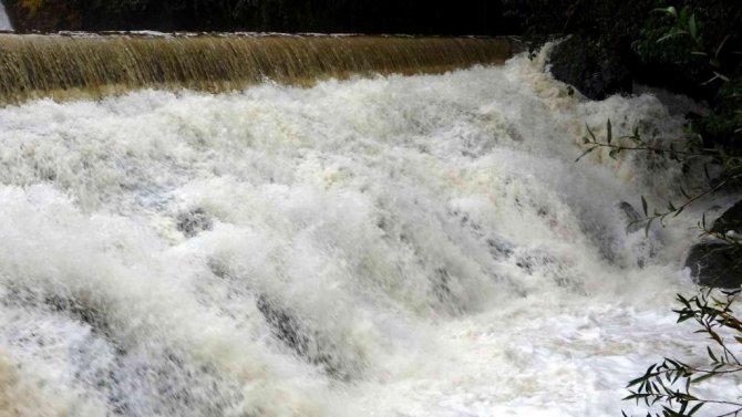 Osmaniye'de etkili olan yağmur sonrasında Amanos Dağları eteklerinde oluşan sis bulutları kartpostallık görüntüler oluştururken, debisi artan yapay şelale...