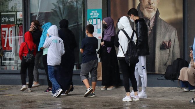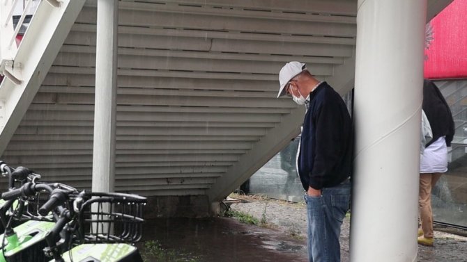 Yağmura hazırlıksız yakalanınca sığınacak yer aradılar