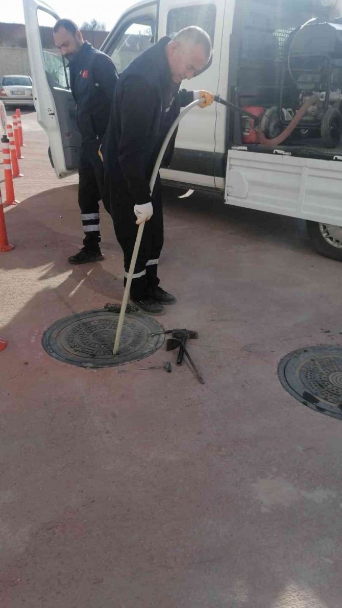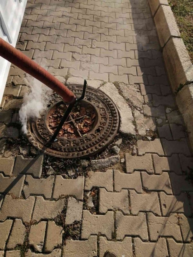 Kırıkkale'nin Yahşihan ilçesinde belediye ekipleri tarafından kanalizasyon ve rögarlardaki zararlı haşerelere karşı çalışmalar sürdürülüyor.