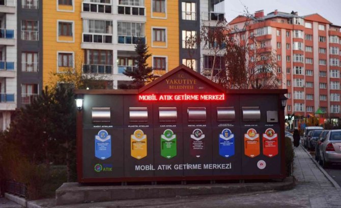 Cumhurbaşkanı Recep Tayyip Erdoğan'ın eşi Emine Erdoğan'ın himayesinde yürütülen "Sıfır Atık" Projesi kapsamında Yakutiye Belediyesi'nce ilçe merkezindeki vatandaşların kolaylıkla ulaşabilecekleri muhtelif noktalara "Mobil Atık Merkezi" konteynerlerinin yerleştirme işlemlerine başlandı.