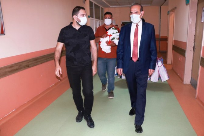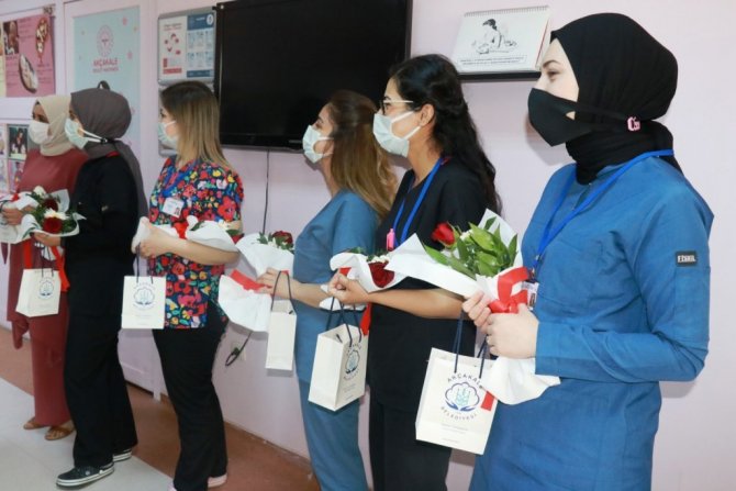 "Ebeler Günü" dolayısıyla Akçakale Devlet Hastanesi'ndeki ebeleri ziyaret eden Belediye Başkanı Mehmet Yalçınkaya personele çiçek verdi.