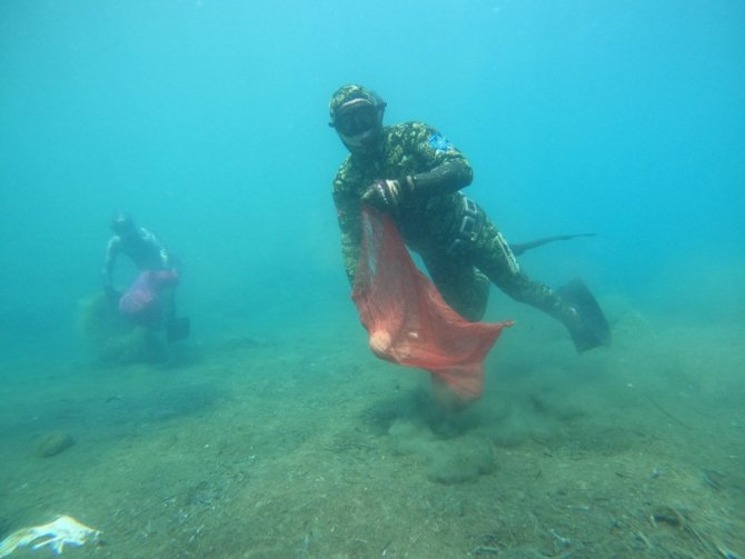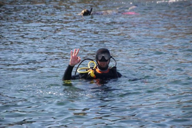 Öğrenciler sahilde, dalgıçlar deniz dibinde atık temizledi