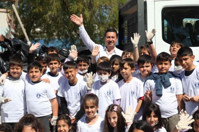 Başkan Aras, öğrencilerle birlikte çıkarılan atıkların etrafında toplanıp doğanın korunmasının önemi hakkında sohbet etti. Çıkarılan atıkların denizlerimizde kaç yıl yok olmadan kaldığını ve bu atıkların deniz canlılarına verdiği zararları anlatan Aras, konuşmasının sonunda etkinliğin sloganı olan "Denize En Çok Mavi Yakışır" sloganını öğrencilerle beraber söyledi.