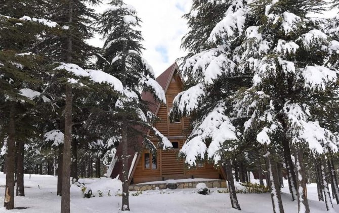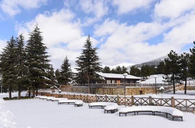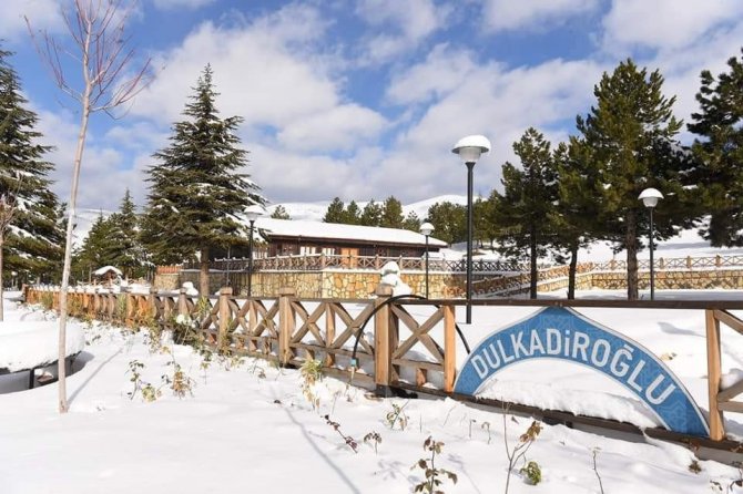 Kahramanmaraş'ta Yalnız Ardıç Mesire Alanı, son günlerde etkili kar yağışıyla beyaz örtüsüne kavuştu.