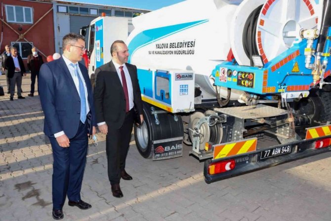 Yalova Belediyesi'nin araç filosuna eklenen kanal açma aracı törenle hizmete girdi.