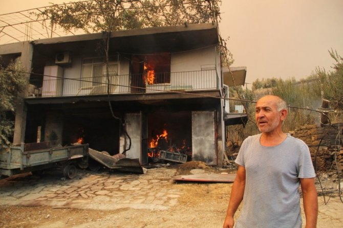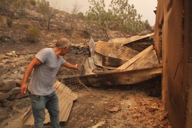Yaşadıklarını anlatan Ali Özkan, "Sabah erken saatlerden beri ev yanıyor. Bir şey söylemeye gerek yok. Evden hiçbir şey kurtaramadım, sadece Allah'ın nimeti diye ekmek kurtarabildim. Hayvanlarımız ağılda yandı. Yavaş yavaş geldi, buralar boşaltılmıştı. Biz gelene kadar hayvanlarımızda yandı. İnsanlar canını kurtardı ev Allah'tan ev boştu" dedi.