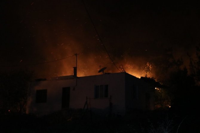 Mersin'in Aydıncık ilçesinde çıkan ve ilçe merkezine kadar inen orman yangını kontrol altına alınmaya çalışılırken, yanan evleri söndürmek için hem ekipler hem de vatandaşlar seferber oldu.