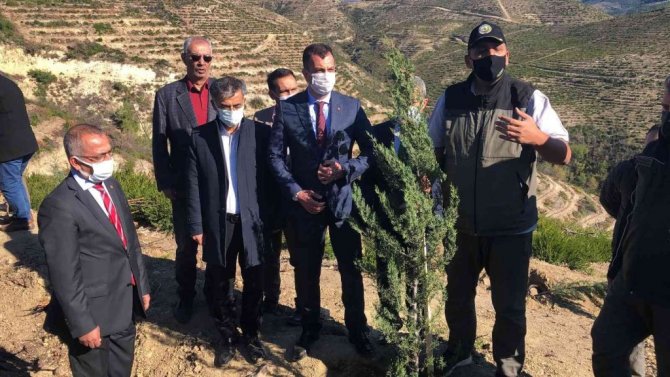 Adana'nın Kozan ilçesinde 11 Kasım Milli Ağaçlandırma Günü nedeniyle yanan ormanlık alanlara fidan dikildi.