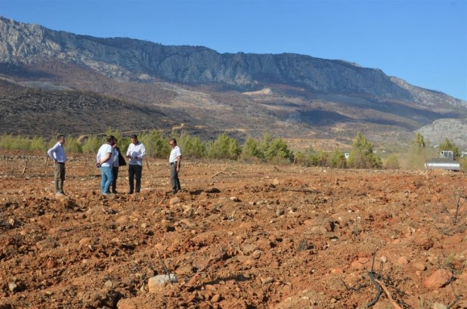 11 Kasım Milli Ağaçlandırma Günü fidan dikim etkinliğinin yapılacağı Yeşilovacık'ta incelemelerde bulunan Mersin Orman Bölge Müdürü Kenan Akduman'a, Ağaçlandırma Şube Müdürü Rıza Güleç, Etüt Proje Başmühendisi Sedat Yıldırım, Silifke Orman İşletme Müdürü Hasan Aslan ve şefler eşlik etti.