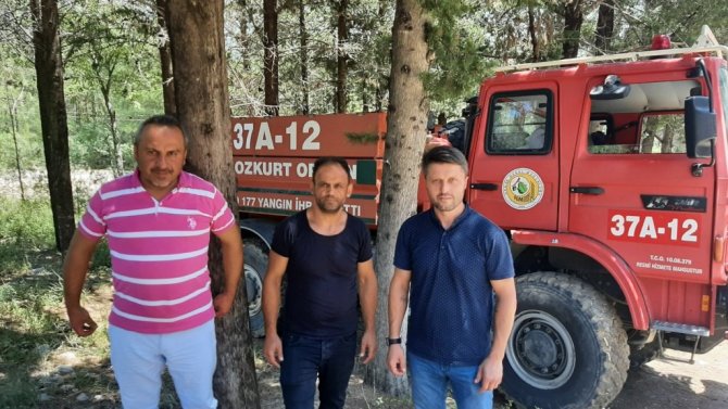 Yangın söndürme çalışmalarına bin kilometre uzaktan geldiklerini belirten Uğur Yiğit, "Burada canla başla yangını söndürmek için çalıştık. Soğutma çalışması sırasında yanan bölgede iki kaplumbağa gördük ve arkadaşlarla kaplumbağaları alarak ilk önce onları serinlettik. Daha sonra da doğaya geri bıraktık" dedi.