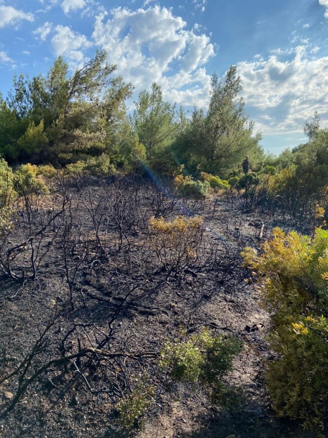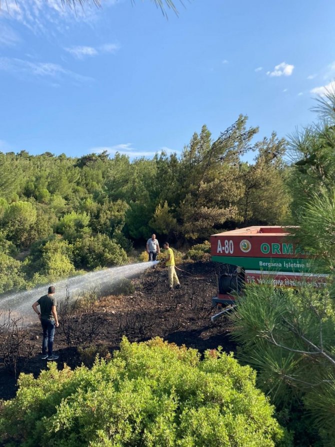 İzmir'de çıkan orman yangınını kontrol altına alan ekipler, dönüş yolunda başka bir yangınla karşılaşınca hemen müdahale etti.