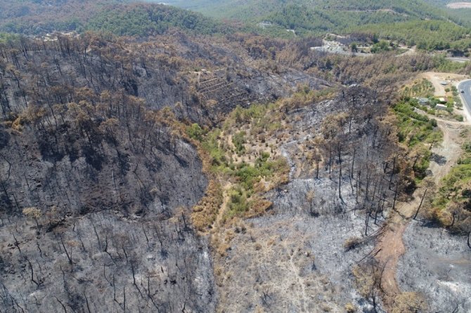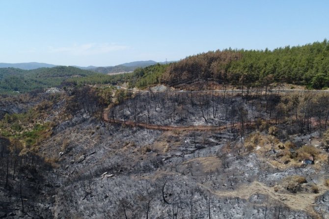 Muğla'nın Marmaris ilçesinde 9 gün boyunca etkili olan ve bazı hanelere de sıçrayan yangın, ekiplerin karadan ve havadan müdahalesi sonrası kontrol altına alınmıştı. Meydana gelen yangının ardından ise yürekleri burkan görüntüler kaldı. Marmaris'te yeşil ve mavinin birleştiği cennet köşelerinin birçoğundan ise geriye sadece külleri kaldı. Armutalan Seyir Tepesi, İçmeler Turunç Yolu, Hisarönü ve Orhaniye Kız Kumu gibi yerli ve yabancı turistlerin ilgi odağı olan noktadaki ormanlık alanların rengi griye döndü. Yangından geriye kalan izler felaketin tablosunu bir kez daha hatırlattı.