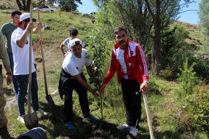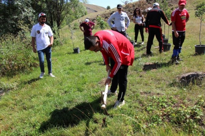 Sivas'ın İmranlı ilçesinde düzenlenen etkinlik kapsamında, ülke genelinde meydana gelen yangınlar nedeniyle 150 meyve ağacı fidesi dikildi.