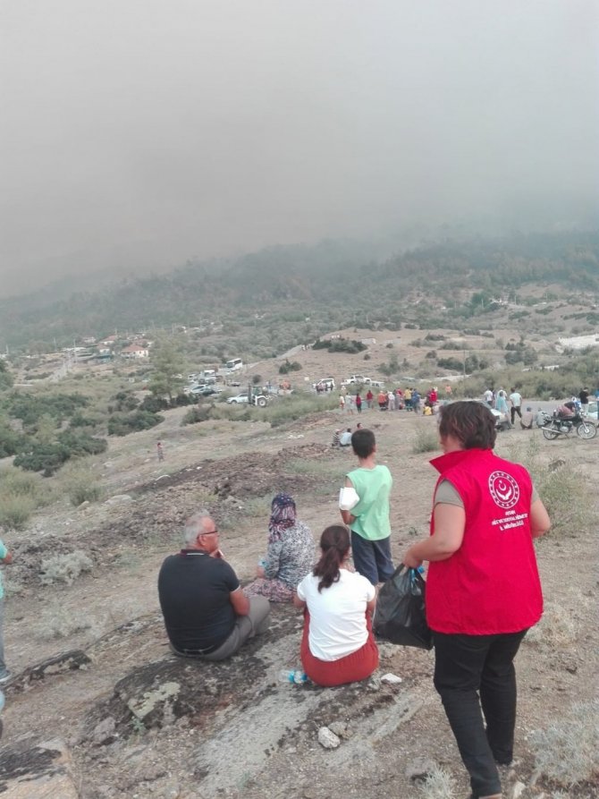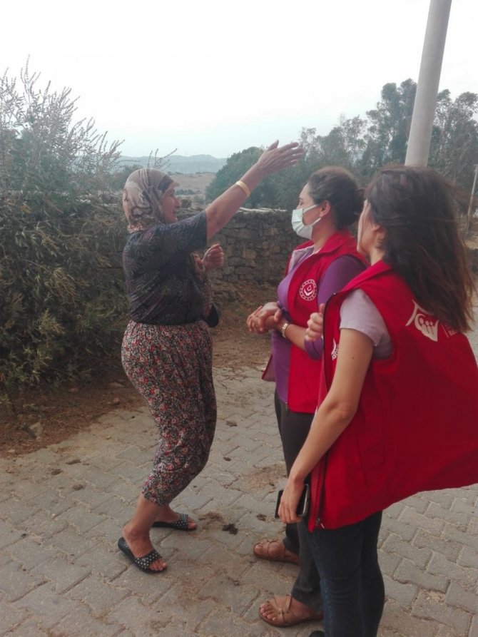 Çine'deki orman yangınında vatandaşların tedirgin bekleyişleri sürerken, Aile ve Sosyal Hizmetler İl Müdürlüğü ekipleri vatandaşlara psikososyal destek hizmeti veriyor.