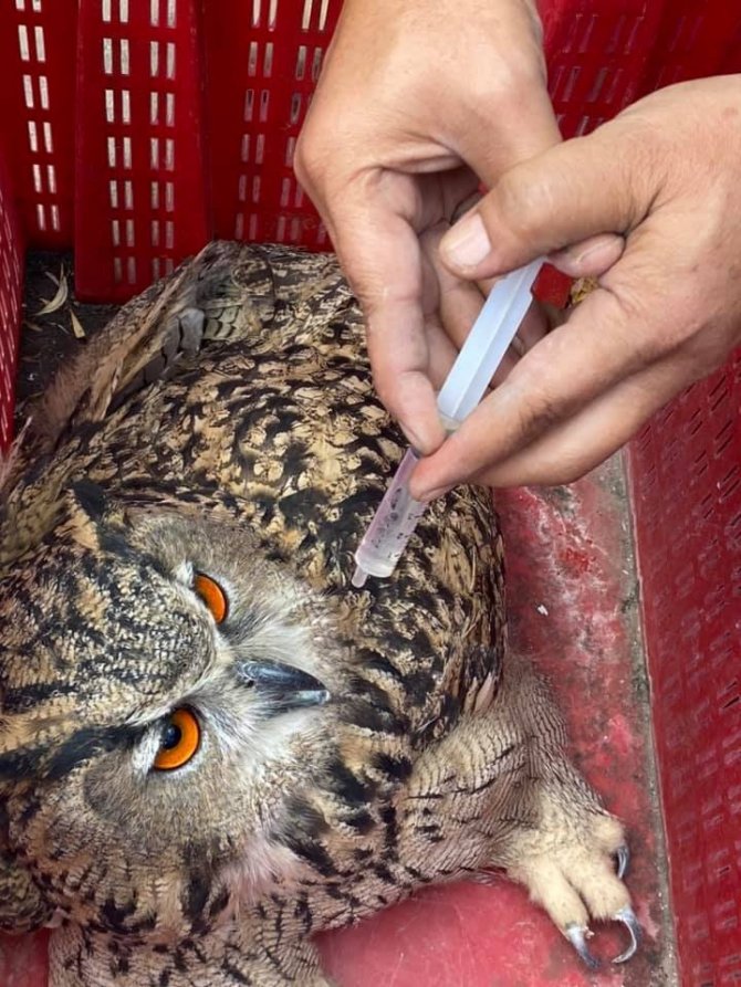 Yaralı halde bulunan puhu kuşu tedavi altına alındı