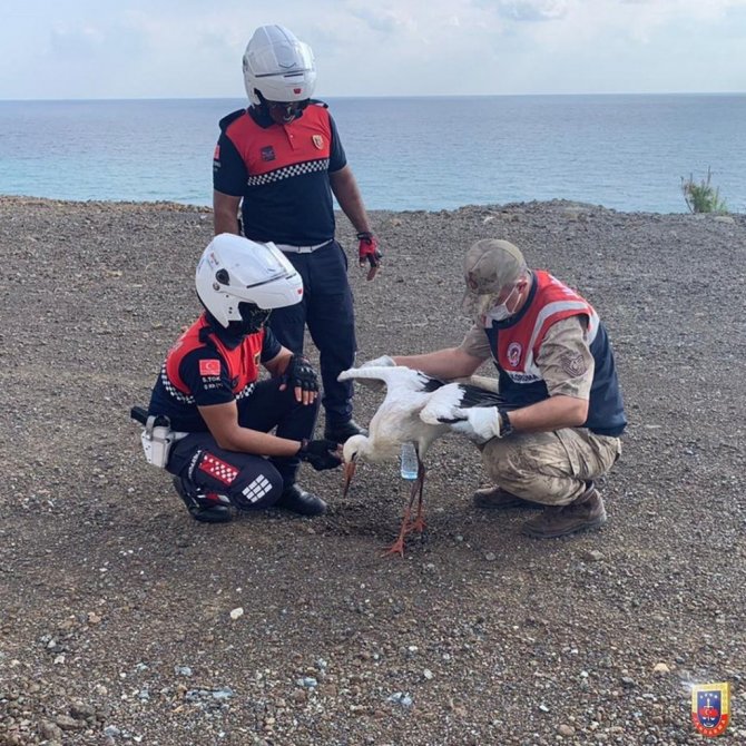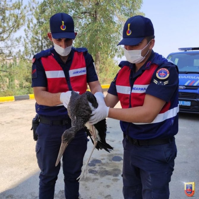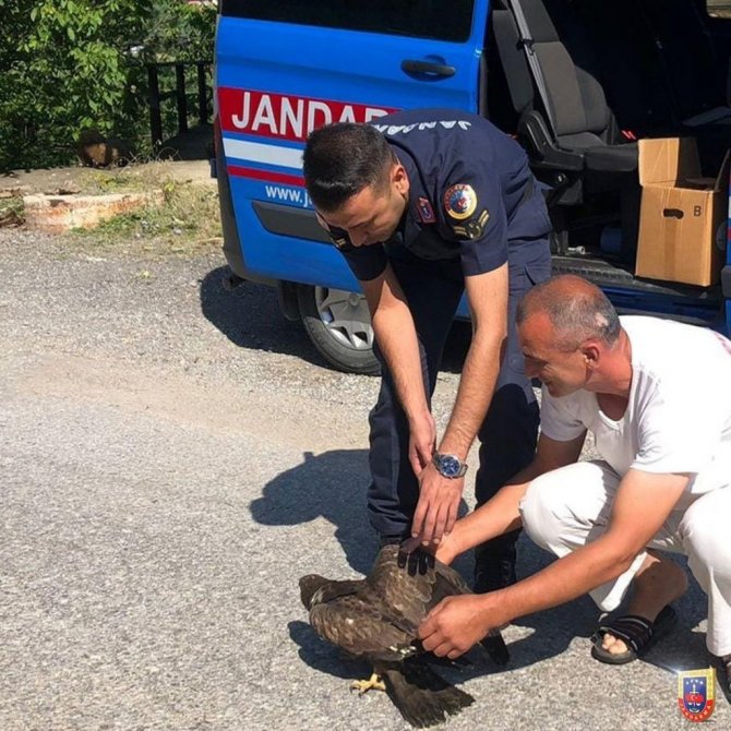 Yaralı kartalın yardımına jandarma koştu