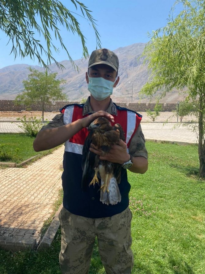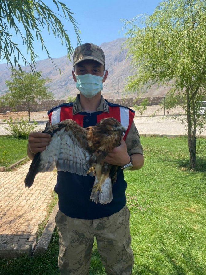 Tunceli'nin Ovacık ilçesinde yaralı halde bulunan kızıl şahin, jandarma ekipleri tarafından muhafaza altına alınarak, Doğa Koruma ve Milli Parklar Şubesi ekiplerine teslim edildi.