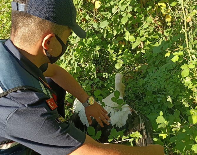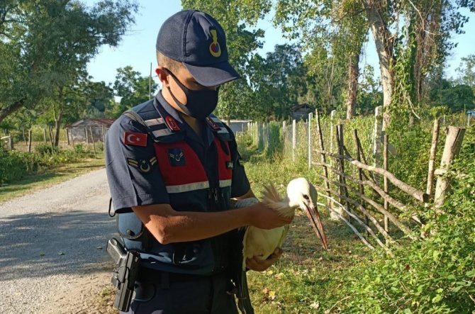 Yaralı leyleğin imdadına jandarma ekipleri yetişti