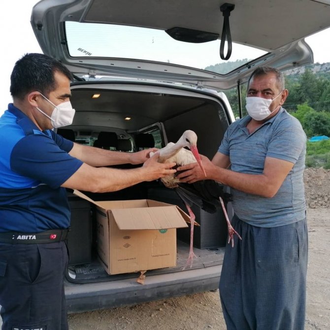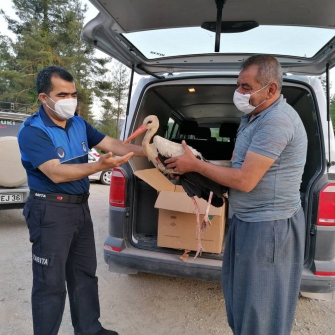 Mersin'in Çamlıyayla ilçesinde yaralı bulunan leylek hayvanat bahçesine teslim edildi.
