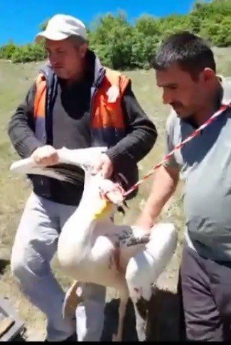 Yaralı pelikan tedavi altına alındı
