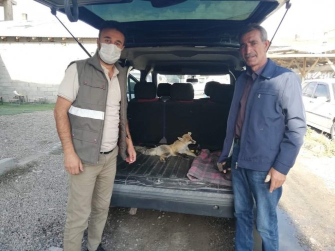 Van'ın Çaldıran ilçesinde duyarlı vatandaş tarafından yaralı olarak bulunan tilki, tedavi altına alındı.
