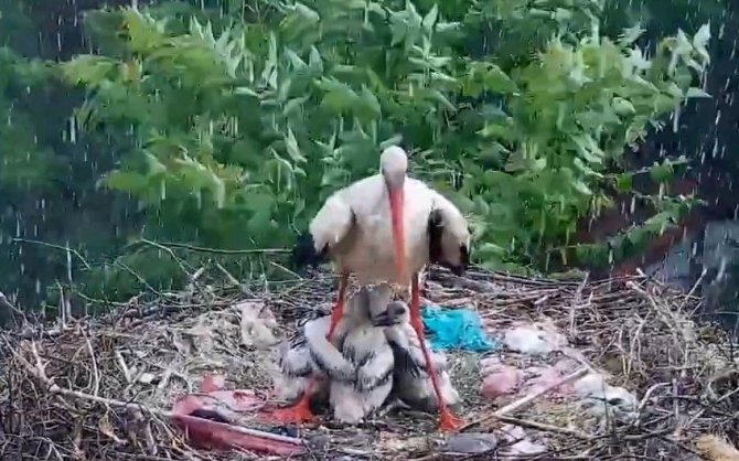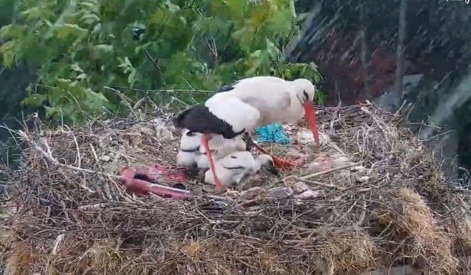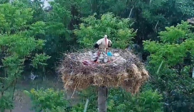 Görüntülerde yağmurun başlamasına saniyeler varken Yaren Leylek yavrularını korumak için hareketleniyor. Bu esnada ayaklarıyla tüm yavrulara dokunan Yaren Leylek daha sonra hızlanacak yağmurdan yavrularını korumak için kanatlarıyla onları kapatıyor. Kısa sürede şiddetli yağış doluya dönünce leylek bu kez kendini adeta yavrularına karşı siper ediyor. Sosyal Medyada görüntüler büyük ses getirirken leyleklerin cefası ise kullanıcıların yorumlarında sıkça dile geldi.