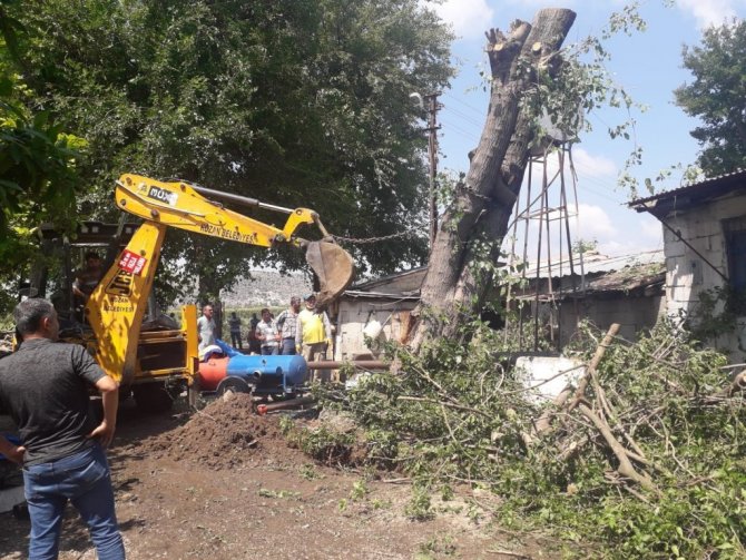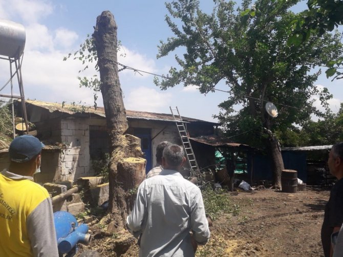 Dün akşam Pekmezci Mahallesi'nde etkili olan şiddetli fırtına nedeniyle Köse ailesinin evinin üzerine dut ağacı devrildi. Şans eseri ölen ya da yaralanan olmadı.
