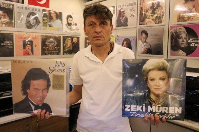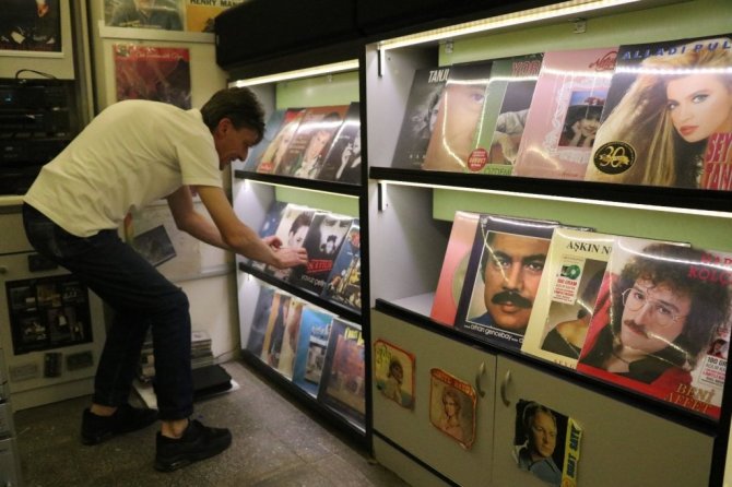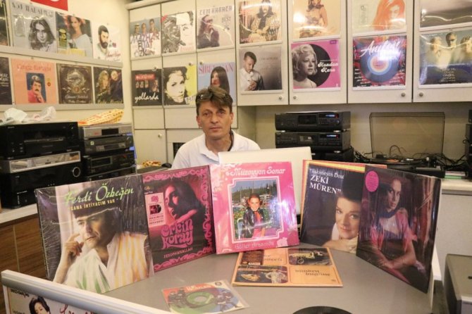 Bolu'da 48 yıl önce ağabeyinin lise çağlarında açtığı plak dükkanını yeniden hayata geçiren Erdem Ünalan (48), yarım asırlık plakları yıllar sonra dinleyicilerle buluşturdu.
