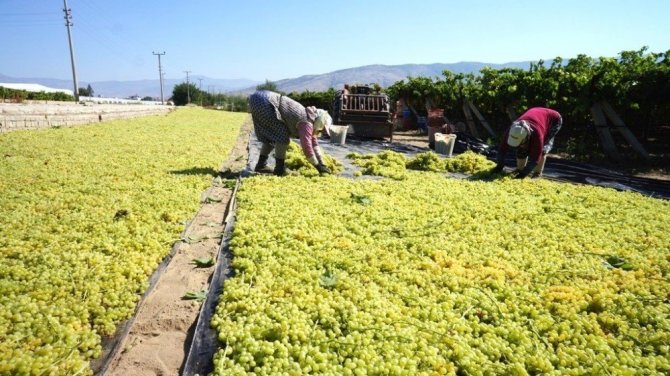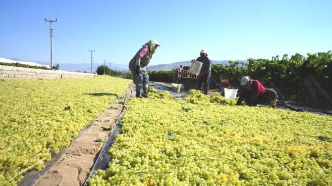 Öte yandan üreticiler, kuru üzümleri yağmurlar başlamadan önce kurutabilmek için boş alanlara üzüm sermeye başladı.