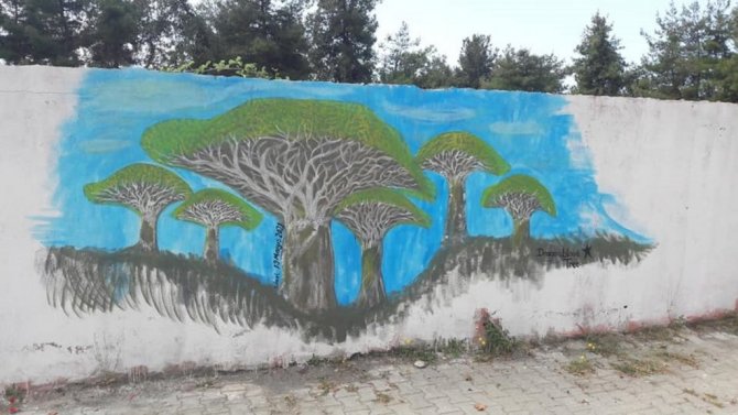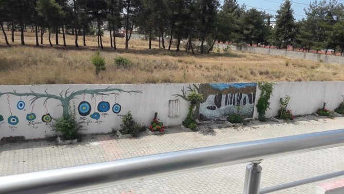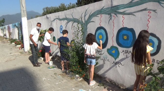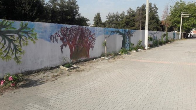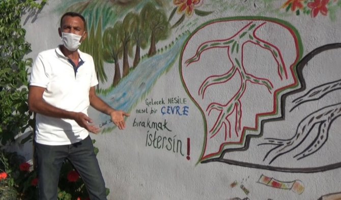 Hatay'ın Dörtyol ilçesinde belediye çalışanı, oturduğu sokağın temiz ve güzel görünmesi için çocuklar ile birlikte renkli boyalar ile duvarlara doğa ve tabiat resimleri çizdi