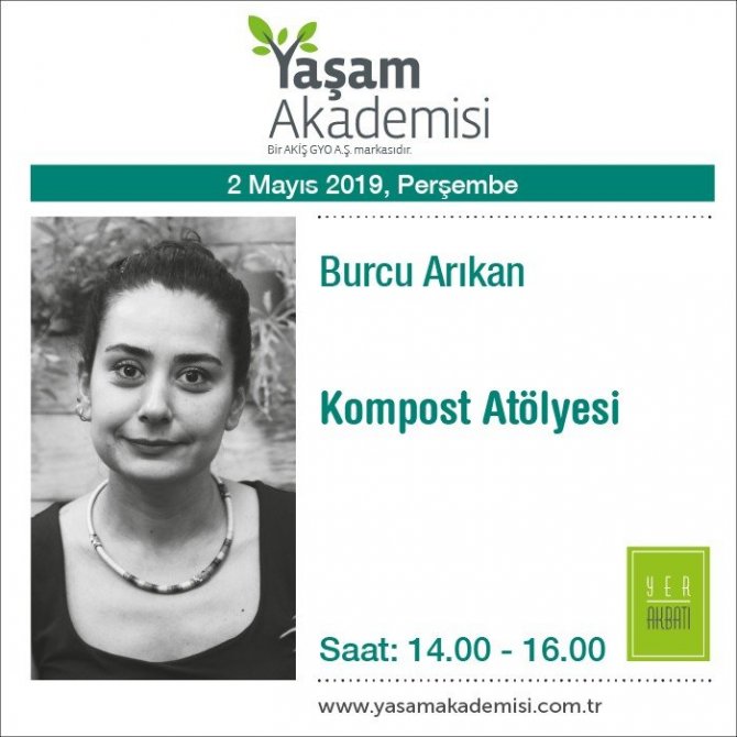 Doğal beslenmeyi lüks olmaktan çıkararak kentte yerel, organik ve damak tadına uygun besinlerin üretilmesi yönünde faaliyet gösteren Ek Biç Ye İç isimli ekibin üyesi Burcu Arıkan, Kompost Atölyesi ile yenebilir bir takım atıkların, ağaç, dal, yaprak parçalarının çürütülmesi, öğütülmesi sonucu elde edilen doğal gübre yapımını anlatacak. Bu gübreyle sebze, meyve ya da çiçek yetiştirirken kullandığınız toprak zenginleşiyor, toprağın iyi hava alabilmesi, işlenebilmesi kolaylaşıyor. Yaşam Akademisi kapsamındaki söyleşi, 2 Mayıs Perşembe günü gerçekleşecek.