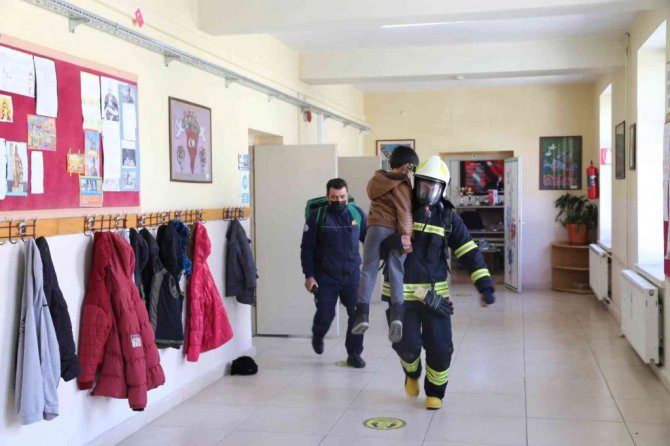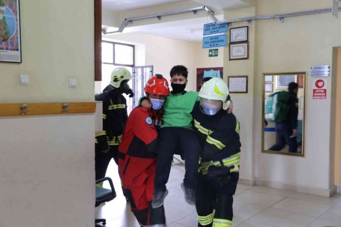 Muğla Büyükşehir Belediyesi ve Yatağan İtfaiye personellerinin bulunduğu gerçeğini aratmayan tatbikata Yatağan Kaymakamı Onur Kökçü de katıldı. Yangın alarmı ve siren sesinin çalmasıyla öğretmenlerin ve okul idaresinin düzenli ve tedbirli bir şekilde tahliyesini gerçekleştirdiği öğrenciler kısa bir sürede okulu boşaltıp toplanma alanında sayımları yapıldı. Sayımlar sırasında senaryo gereği okul içerisinde mahsur kalan iki öğrenci itfaiye ekipleri tarafından kurtarıldı. Daha sonra öğrencilere ile öğretmenlere deprem öncesi, deprem anı ve deprem sonrası neler yapılması gerektiği, tahliye ve toplanma bölgesinin önemi, 112 Acil Çağrı Merkezine verilen ihbarlarda dikkat edilmesi gerekenler ve portatif yangın söndürme cihazı teorik ve uygulamalı olarak anlatıldı.