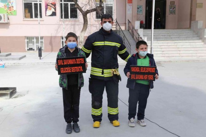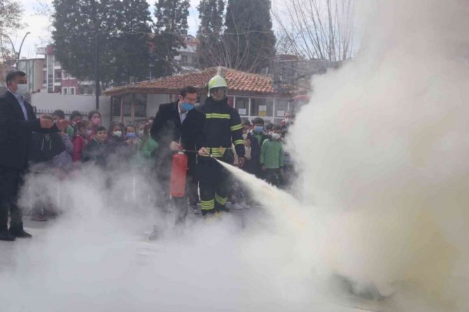 Muğla'nın Yatağan ilçesi Kıbrıs İlkokulu öğrencileri 1-7 Mart deprem haftası sebebiyle olması muhtemel deprem ve yangın anında hazırlık tatbikatı yaptı.