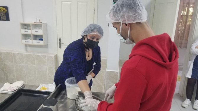 Birimde 10 ayrı atölyede hastalara yönelik çeşitli kursların var olduğunu kaydeden Başhekim Yardımcısı Dr. Kocabaş, "Gastronomi hocamızla yemek yapma, salata, kek yapma, bulaşık makinesine yerleştirme, bulaşık makinesinden çıkarma, fırın, ocak aspiratör kullanma, mikser kullanma gibi çeşitli evde kendi yapabileceği faaliyetleri burada, öğreterek bağımsız bir yaşam sürmesini sağlamaktayız. Hastanemizde Halk Eğitim Merkezi tarafından görevlendirilen usta öğreticimiz resim öğretmeni tarafından bunlar çizilmekte ve hastaların katılımıyla birlikte renklendirme işlemleri yapılmakta. Daha önce servislerimizin duvarlarında başlayan işlemler, rehabilitasyon servisimizde de başlamış ve bu tablo oluşmuştur. Ve bunda hastalarımız ve resim öğretmenimizle birlikte devam edecektir" diye konuştu.