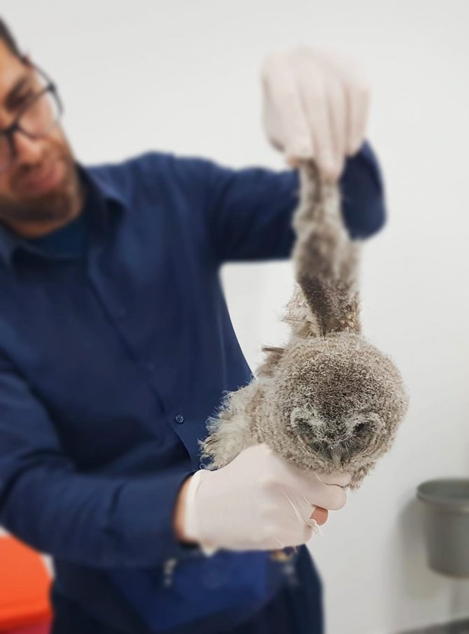 Yavru alaca baykuş tedavi altına alındı