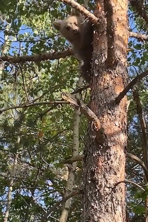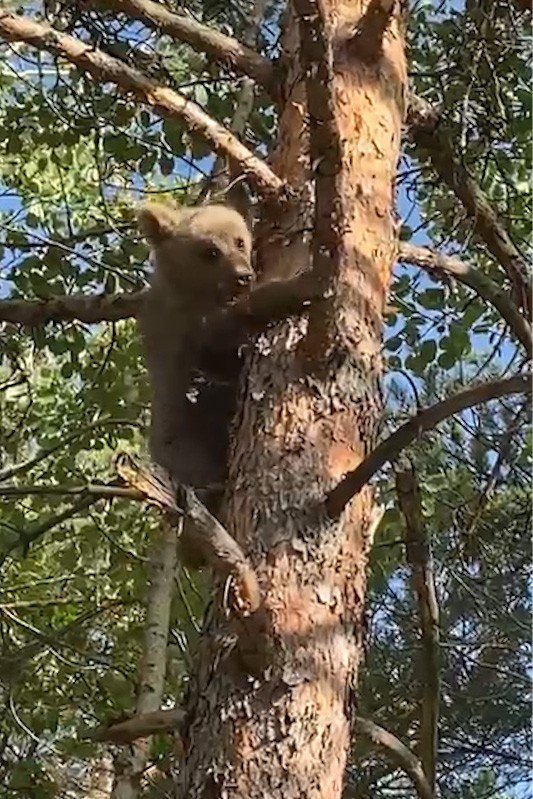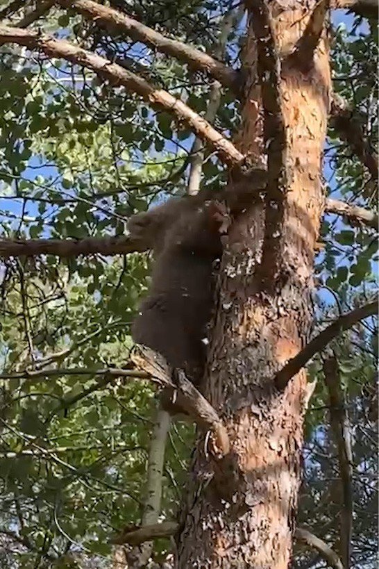 Gümüşhane'de devriye gezen orman işletme ekiplerini gören yavru ayı korkudan ağaca tırmandı. Ekipler, ağaca tırmanan yavru ayıyı cep telefonu kameralarıyla görüntülerken, ayıya zarar vermemek için kısa süreli gerçekleştirilen kayıtta yavru ayının çok korktuğu gözlendi.