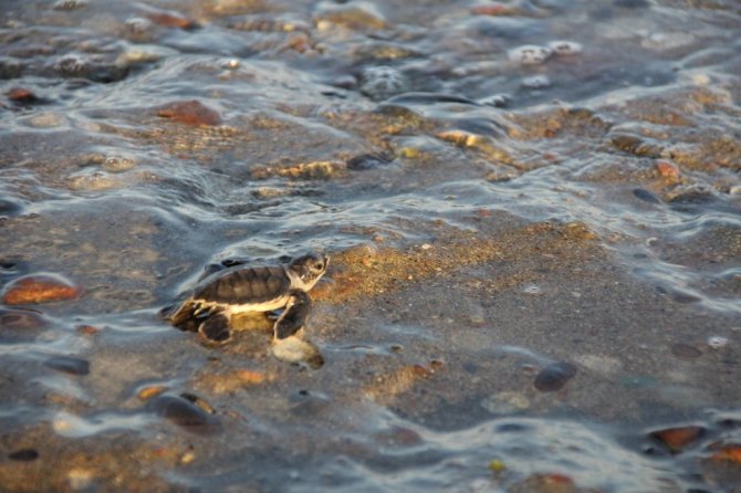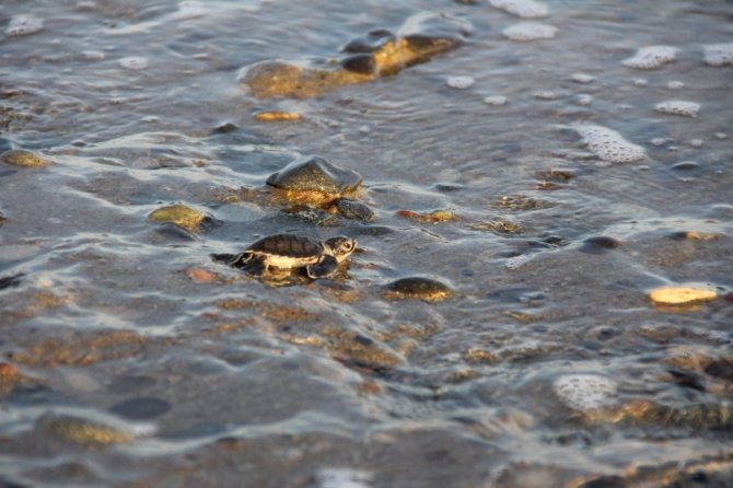 MERSİN (İHA) – Deniz kaplumbağalarının yuvalama alanı olan Mersin'de yavru kaplumbağalar denizle buluştu.