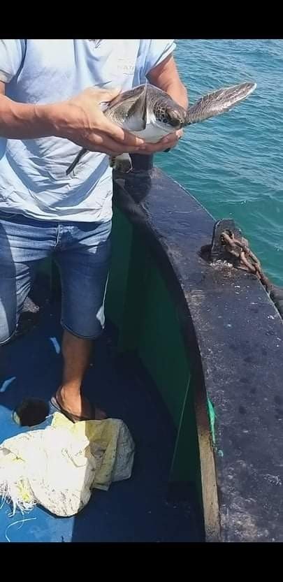 Hatay Büyükşehir Belediyesi Çevre Koruma ve Kontrol Dairesi Başkanlığı'nın Samandağ'da deniz temizliği yapan ekipleri, çuvalın iplerine dolanmış yavru bir deniz kamlumbağasına rastladı. Güverteye alınan yavru kaplumbağa, iplerine dolandığı atıktan kurtarıldı ve tekrar denize bırakıldı.