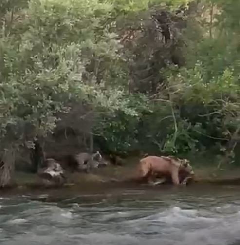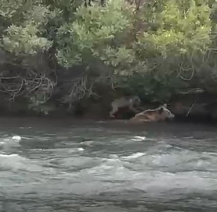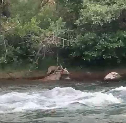 Tunceli'nin Pülümür Vadisi'nde anne ayı ile yavru ayı görüntülendi. Yavrusuyla Pülümür Çayı'na doğru hamle yapan anne ayı, yavrusunu sudan karşıya geçirmeye çalıştı. Suyun sığ yerlerini arayan anne ayı, yavrusunun tedirgin olması nedeniyle karşıya geçmekten vazgeçti. Anne ve yavrunun başarısız girişimleri cep telefonu kamerasıyla kayıt altına alındı.