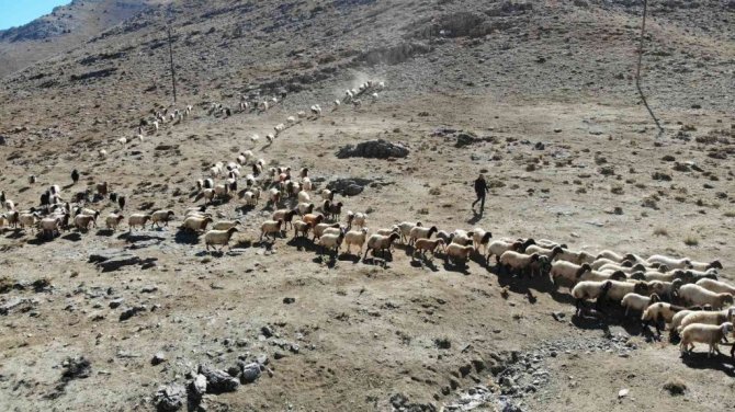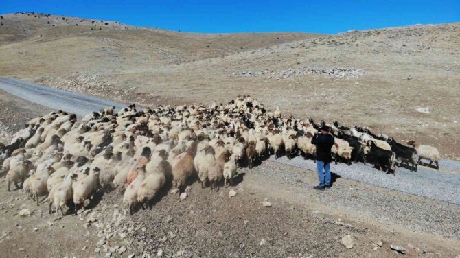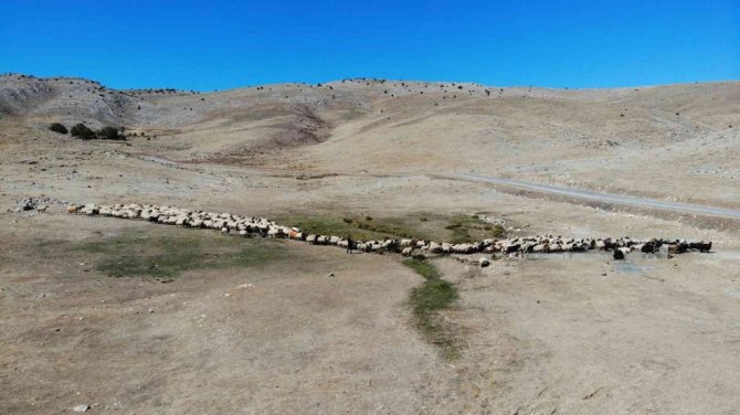 Malatya'da ilkbaharda küçükbaş hayvanları ile yaylalara çıkan hayvan yetiştiricilerinin zorlu dönüş yolculuğu başladı. Yetiştiriciler, kurak geçen yaz mevsiminden dolayı hayvanların yeteri kadar besin tüketememesinden dert yanıyor.