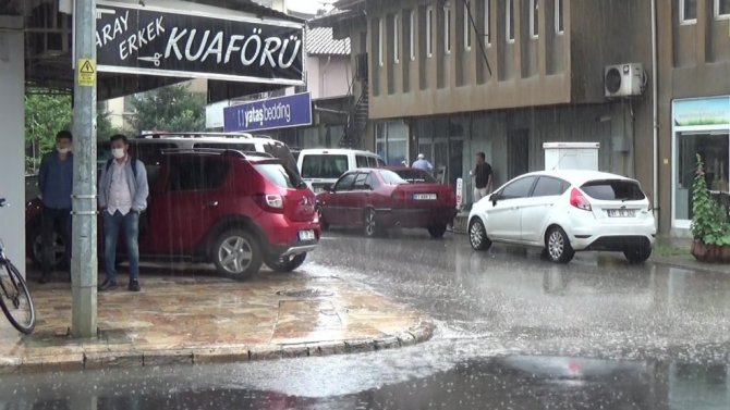 Düzce kent merkezi öğlen saatlerinde yağan sağanak yağışın etkinde kaldı. Aniden bastıran sağanak yağış Yollarda su birikintilerine yol açarken, yağmura hazırlıksız yakalanan birçok Düzceli ıslanmaktan kurtulamadı. Bazı vatandaşlar yağan yağmurdan korunmak için dükkanların önlerindeki bulunan tentelerin altına ve saçakların altına saklandılar.