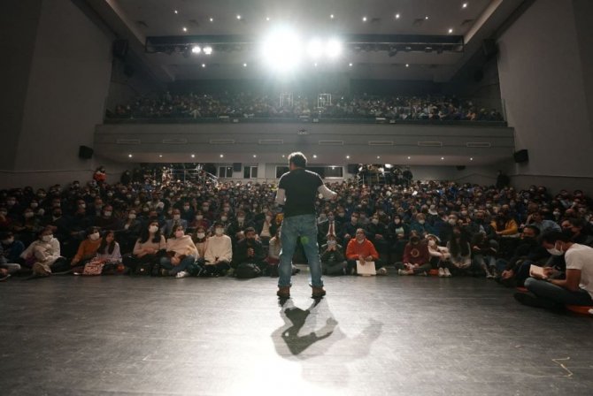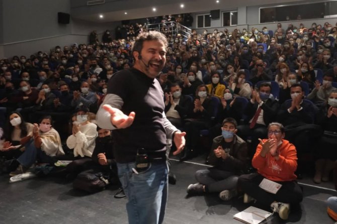 Söyleşine anekdotlar ve yaşanmış hikayelerle başlayan yazar İzgören, ülkenin bütünlüğü için etnik kökenlerle uğraşmak yerine bilgiye odaklanılması gerektiğini vurguladı. İzgören, "Kendi doğrusu olmayanlar başkalarının doğrularının peşinden gider. Sanatı ve edebiyatı hayatımıza katmalıyız" dedi.