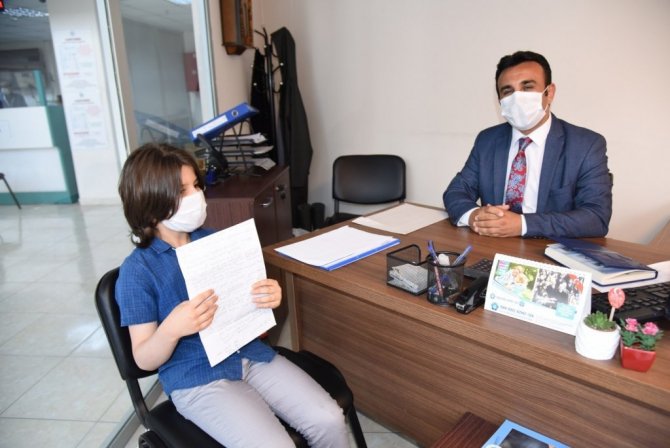 Duyarlılıklarından ötürü Taylan Özgür Ayfer'e ve baba Okan Ayfer'e teşekkür eden Abone İşleri Dairesi Başkanı Talip Akbaş, "Abone İşleri Dairesi Başkanlığı olarak tam kapanma sürecinde Manisa il genelinde Milli Eğitim Müdürlüğümüz ile yapmış olduğumuz protokol esasına göre 4'üncü sınıf öğrencilerimize online olarak su tasarrufu eğitimi verdik. Bu eğitimlerimizin sonucunda farklı ilçelerimizden çok güzel tespitler, mektuplar, el işlemeleri, pankartlar aldık. Yapmış olduğumuz eğitimin ne kadar önemli olduğunu, gelecek nesillere düzgün, sağlam ve temiz içilebilir su kaynakları bırakmanın onları bilinçlendirmeden geçtiğinin bir kanıtı olarak bizleri çok mutlu etti. Bugün Taylan Özgür kardeşimiz de yazmış olduğu mektubu ile bu konuda ne kadar bilinçli olduğunu, topluma ne kadar katkıda bulunabileceğinin bir emaresini bizlere gösterdi. Öncelikle kendisine, ailesine ve öğretmenine çok teşekkür ediyorum. Bu tip tespit ve önerilerin daha da artmasını temenni ediyoruz. Manisa il genelinde 629 bin su abonemize ve bir buçuk milyon vatandaşımıza sağlıklı içme suyu götürmekle mükellefiz. Bu hizmeti tüm birimlerimizle birlikte 7/24 yerine getiriyoruz. Büyükşehir Belediye Başkanımız Sayın Cengiz Ergün'ün önderliğinde öncelikli hedefimiz tüm Manisa'mızda bütün öğrencilerimize, öncelikle gençlerimize, vatandaşlarımıza kurumsal bütünlüğümüzle beraber su tasarruf bilincini aşılamak. Su kaynaklarımızın maalesef sınırlı olduğunu biliyoruz. Bu sınırlı kaynakların da en düzgün şekilde nasıl kullanılabileceğimizi vatandaşlarımızla paylaşmak ve gelecek nesillere sağlıklı, içilebilir su kaynakları bırakmak istiyoruz" diye konuştu.
