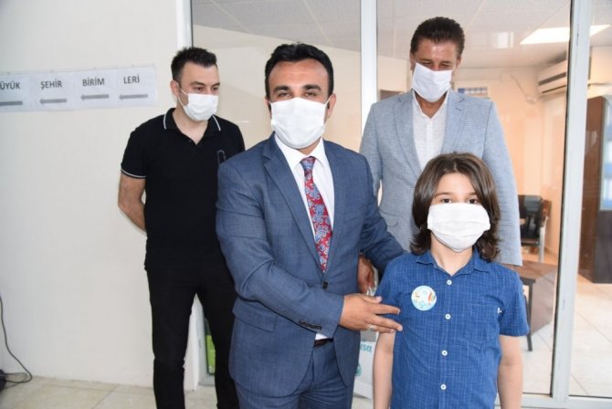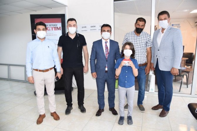 Taylan Özgür Ayfer'e "su gönüllüsü rozeti" takan Daire Başkanı Akbaş, baba ve oğula hediyeler takdim etti. Rozeti takan Taylan Özgür Ayfer, "Lütfen sularımızı kirletmeyelim. Sularımızı gerektiğinden fazla kullanmayalım." mesajı verdi.